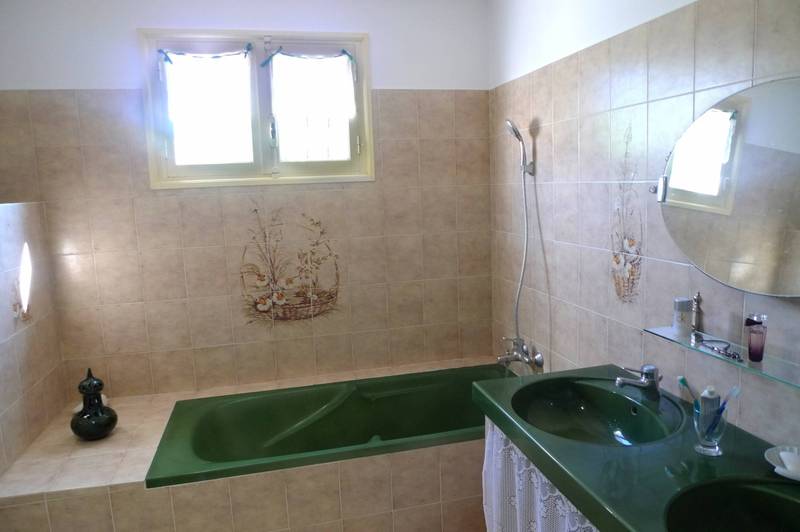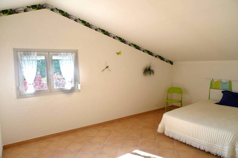 Elle se compose d'un salon avec cheminée à insert, salle à manger, cuisine ouvrant sur une terrasse à l'Ouest, arrière cuis (buanderie/cellier). Toujours au même niveau, 2 chambres, une salle de bains avec douche, WC. Au Sud, une terrasse couverte ombragée de verdure. A l'étage, 2 chambres mansardées, une salle de jeux et une pièce pouvant devenir une salle de bains. Petit cabanon en pierres. Garage.