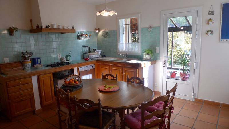 Entièrement sur vide sanitaire et sous-sol, on trouve: entrée/couloir, salon/salle à manger avec cheminée, cuisine équipée, arrière cuisine, spacieuse véranda, 2 chambres de plain-pied avec bains pour chacune. Toilettes invités, placards, cave enterrée, garage. Au 1er: salon d'étage (arrivées d'eau en attente pour création d'une salle de bains si nécessaire), 2 chambres, salle de bains et WC.