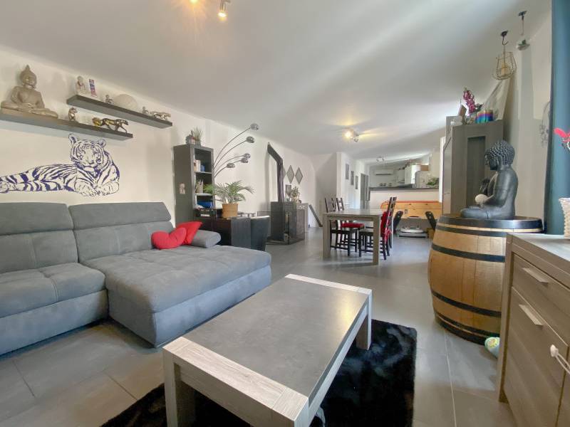 strong>L'agence Christine Miranda vous propose à la vente cette belle maison de village lumineuse entièrement rénovée au cœur du village. Le bien se compose comme suit, au rez de chaussée vous trouverez une entrée avec placards, une grande chambre de 15m² environ, une salle de bain, une cave et un wc. Au première étage, une grande pièce de vie comprenant le salon, la salle à manger, une cuisine ouverte équipée et aménagée, un cellier. Au dernier niveau, deux chambres dont une de 15m² environ avec placard, une grande salle d'eau de 9m² avec douche à l'italienne et un WC. Système de chauffage : climatisation réversible + poêle à bois. Tout à l'égout. Toiture neuve. Pas de travaux à prévoir. Proche des commodités. Visite virtuelle sur demande.