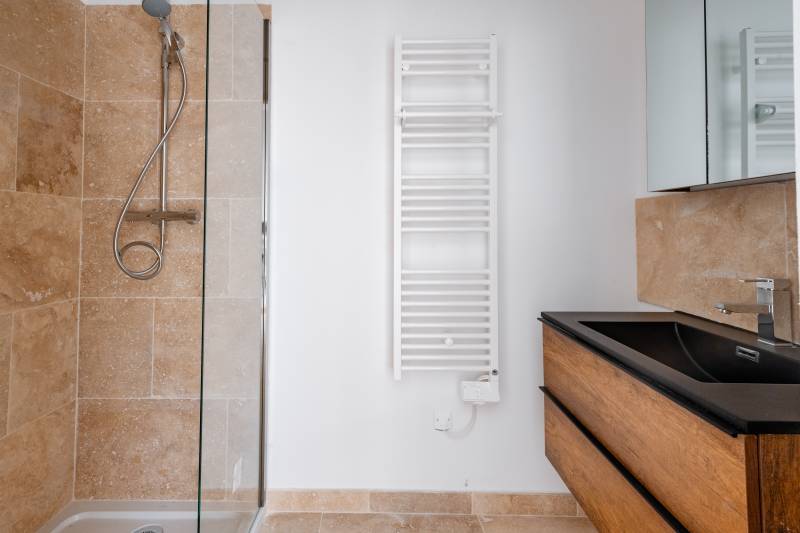 ans petite copropriété pleine de charme comprenant 6 logements, Ce logement, entièrement rénové avec des matériaux de qualité dispose en rez de chaussée d'une cuisine équipée ouverte sur séjour donnant sur jardin ( 33m²) et terrasse en bois. Une chambre de 14m² avec salle d'eau et dressing.