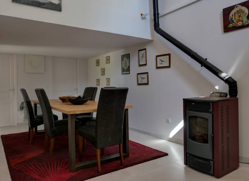 ntièrement rénové , il dispose en rdc d'une cuisine équipée avec électroménager de grande qualité, d'une salle à manger avec poêle à granules, salon. Bureau avec poêle à granules et buanderie. Une cave . A l'étage, 4 chambres dont une suite parentale avec salle d'eau. Une chambre donnant directement sur l'espace piscine. Une salle d'eau avec double vasque. A l'extérieur, une terrasse couverte avec cuisine d'été ( évier- plan de travail, four à pizzas Vallabrègues). Une salle d'eau à terminer avec vasque et wc suspendu. Plage en composite et piscine 4m*8m avec système au chlore. Local piscine. fosse septique, double vitrage- volets bois- chauffage électrique et 2 poêles à granules. Puits. Idéal pour une résidence de vacances.