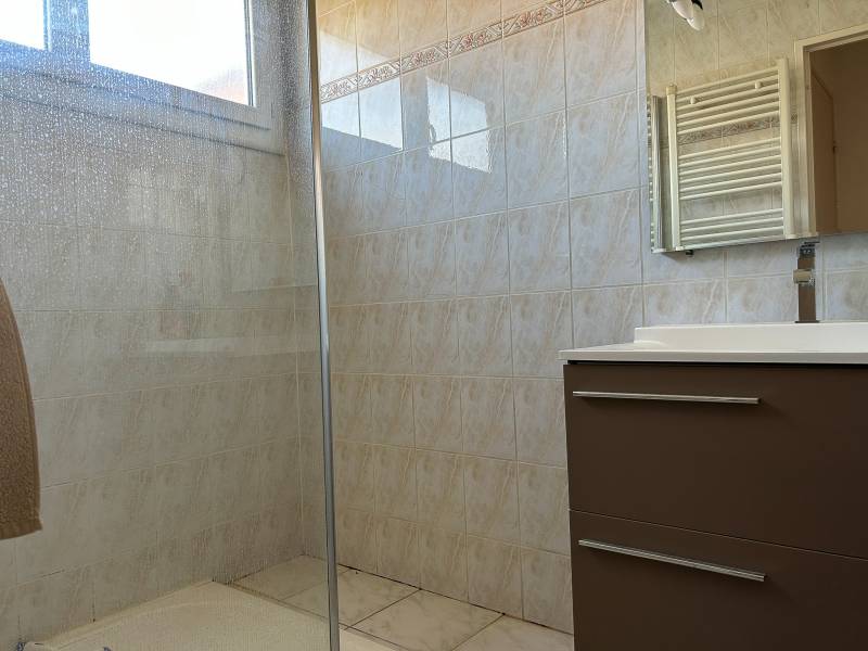 aison d'habitation sur 2 niveaux. 101m² sur terrain de 230m². En rez de chaussée, une buanderie. une chambre avec salle de bains . Cellier. Une porte intérieure mène au garage A l'étage, Salon/séjour avec accès sur terrasse couverte. Une cuisine équipée, 2 chambres.1 salle d'eau. wc indépendant. chauffage individuel au gaz. Double vitrage. maison libre au plus tard Octobre 2024.
