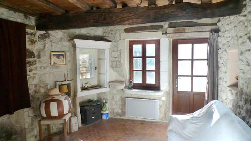 Ideale en pied à terre ou pour pour petite famille, on trouve: cuisine aménagée avec coin repas ouvrant sur une terrasse, salon, petit salon avec cheminée en pierres (8m²).