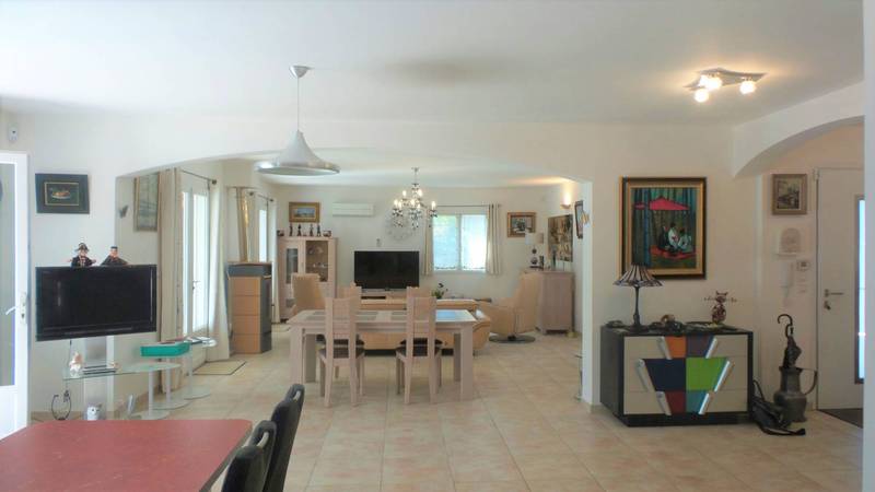 Upstairs two bedrooms give directly onto a balcony facing south. A shower room and separate toilet. A French window to the north opens onto another terrace giving access via an outside staircase to the back of the house. Possibility to create an independent dwelling on the first floor. For the outside : a swimming pool. A garden enclosed by walls and fences, a shelter for 1 car. Covered terraces. Electric gate. Existing alarm system.