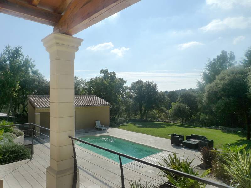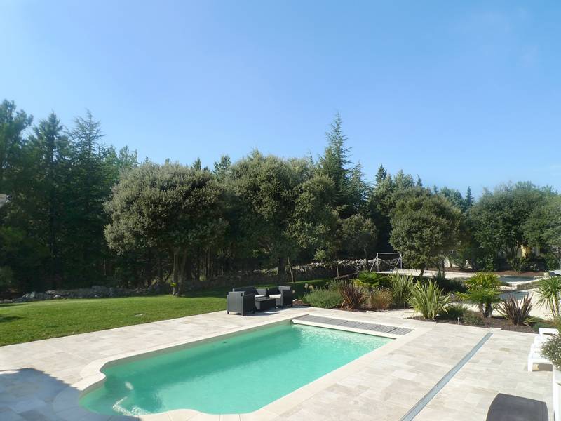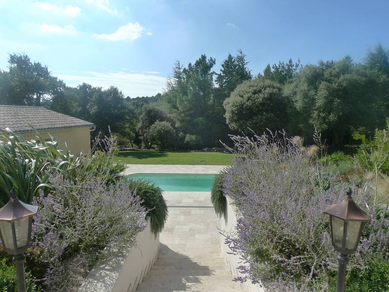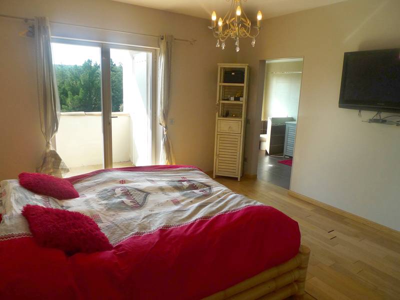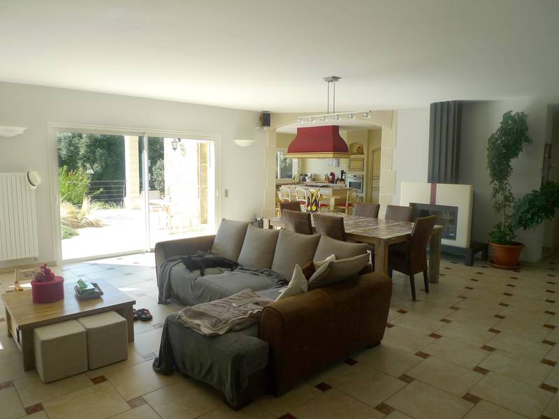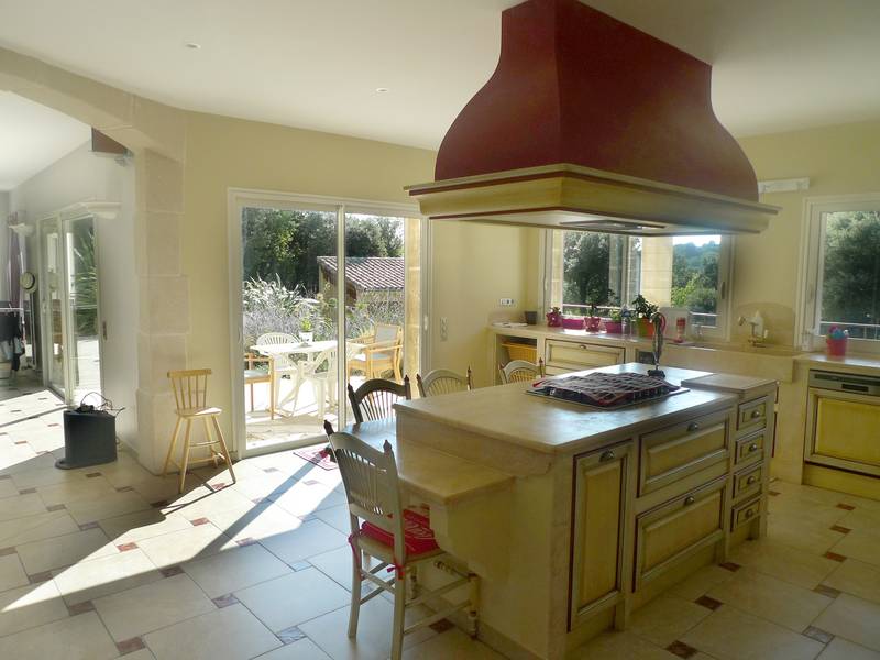 Elle developpe 293m² en grande partie de plain-pied. On trouve: Spacieux salon/salle à manger avec cheminée de 55m², cuisine équipée de 35m². Ces pièces ouvrent toutes sur terrasses. Cellier, WC. Dans la partie nuit: 3 chambres, salle d'eau, 1 bureau. WC. A l'étage: chambre parentale avec dressing, balcon/solarium, salle de bains (+ douche + WC). Matériaux et prestations de qualité.