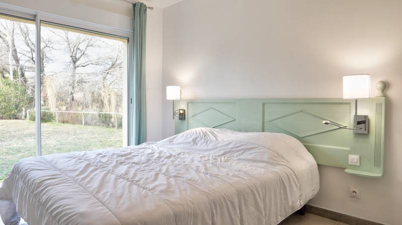 Le parc extérieur, parfaitement entretenu, comprend une piscine de 8x4 mètre et de nombreuses terrasses. Le terrain bénéficie d'un environnement naturel et d'un chemin menant à la rivière.