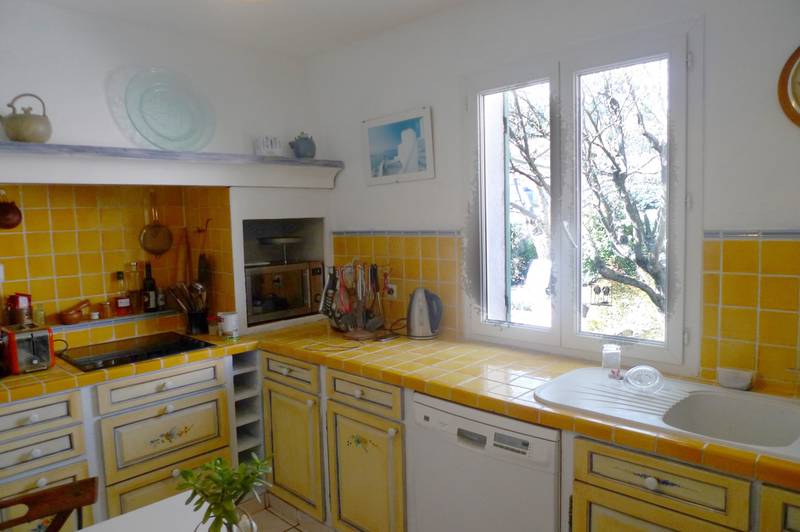 Charmante villa entièrement de plain-pied. En très bon état, Sh 88m² répartis entre: la salle à manger ouvrant sur terrasse avec pergola (exposée sud/ouest), le salon avec cheminée à insert, la cuisine équipée (arrière cuisine et garage aménagé en buanderie et cellier), 3 chambres avec placard et, une salle de bains. WC séparés. Elle profite d'un jardin d'env. 300m² avec cabanon.