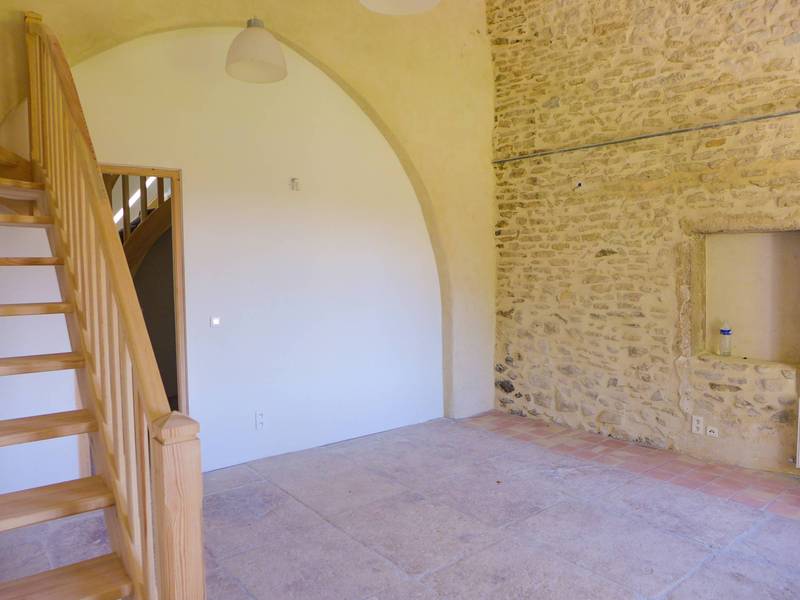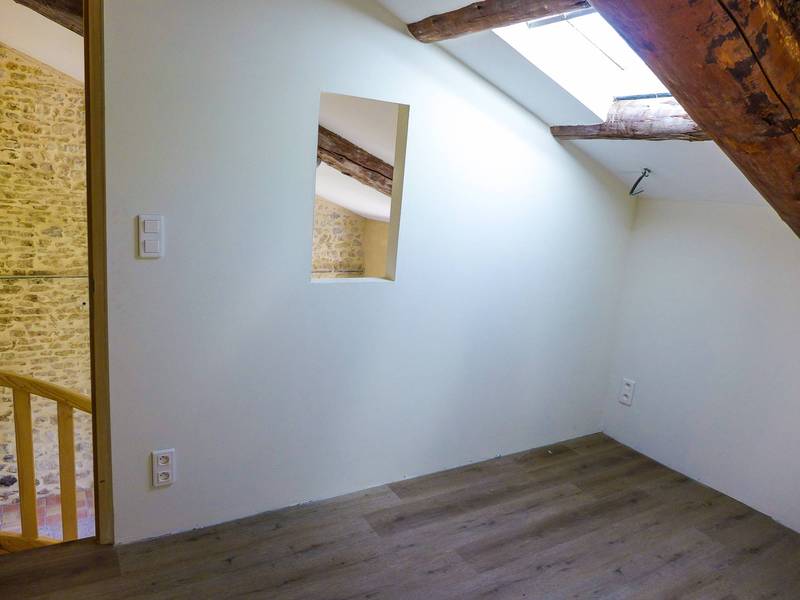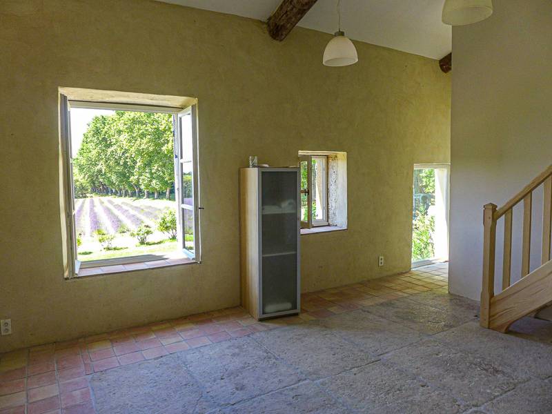 itué dans un environnement bucolique, au milieu des champs de lavandes , des vignes et oliviers, duplex entièrement rénové d'env. 80m² situé dans copropriété en pierre. Neuf, Il dispose en rez de jardin, d'une cuisine équipée avec coin repas, un wc. A l'étage, une pièce lumineuse avec vue sur les champs de lavandes et la campagne environnante. une salle d'eau, vasque et wc. un escalier en bois permet d'accéder à une première chambre mansardée. La seconde chambre dispose d'une mezzanine, (2 velux). Duplex très agréable entièrement rénové, à neuf. Il dispose d'un jardinet . En communs, espace piscine, jeux pour enfants. Parkings et cour intérieure.