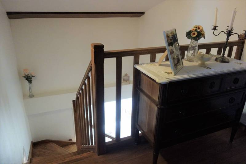 A l'étage, 2 chambres, dont une avec terrasse couverte, se partagent une salle de bains spacieuse avec baignoire d'angle 2 places. 1 bureau donnant sur la terrasse.