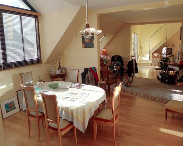 p>Idealement situé au coeur de la ville de CONCARNEAU en bretagne, à 2 pas et de la plage et des commerces, ce superbe appartement d'architecte de 187 m² SH (loi carrez), compte en réalité 290 m² de surface utile. Du hall d'entrée, un ascenseur privatif vous mène directement au coeur de l'immence pièce de vie qui comprend 3 volumes ouverts les uns sur les autres. De grands velux innondent l'intérieur de lumière tout au long de la journée. Au même niveau, une grande chambre parentale avec salle de bain et douche équipés de système "hydro". A l'autre bout une très belle cuisine très bien équipée avec sa terrasse. une autre terrasse offre en extension du salon une "petite vue" sur l'océan. un escalier coure le long du mur pignon et dessert un grand pallier - mezzanine ainsi que 3 chambres, grande salle d'eau et wc. Partout, parquet au sol. prestation de qualité. Grand garage 2 ou 3 place et cave à vin avec point d'eau pour les retours de la plage....