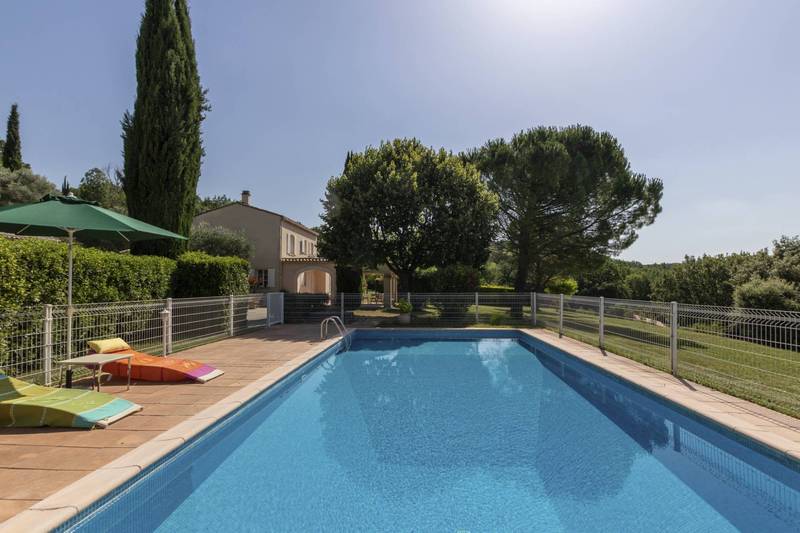 La maison profite d'une 1ère terrasse baignée de lumière et d'une autre, couverte, donnant sur la piscine de 10x5m² sécurisée par une clôture.
