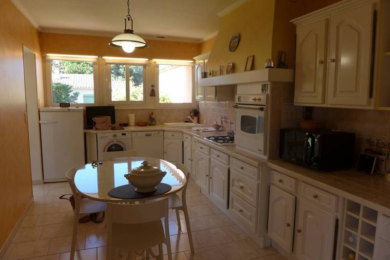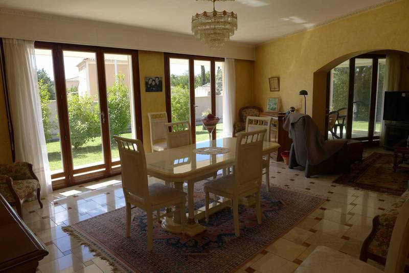 Très beau terrain réparti entre, le jardin, l'espace parking et, une petite oliveraie! Elle développe 140m², une entrée sépare les pièces de vie du coin nuit. On trouve: cuisine équipée, salon/séjour ouvrant sur une terrasse fermée par des baies coulissantes. Belle luminosité!