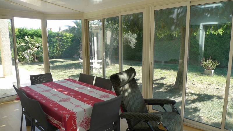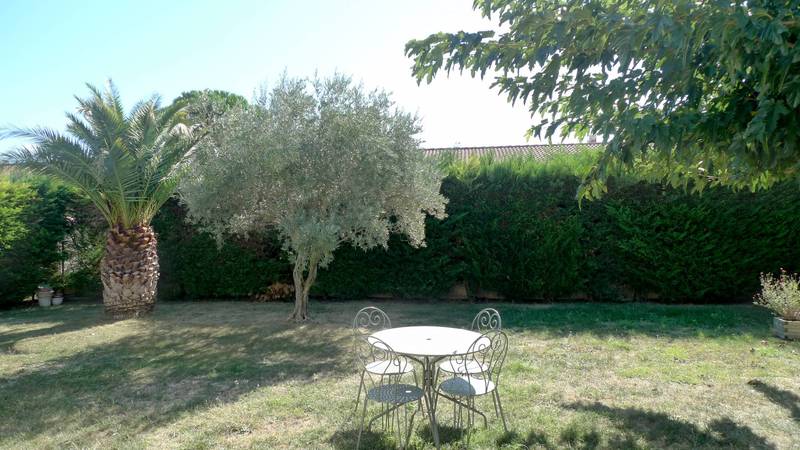 La maison profite d’un très agréable jardin planté d’env. 650m² (2 palmiers, 1 olivier, 1 mûrier platane, 1 saule pleureur) avec véranda de 21m² (baies alu coulissante) véritable pièce de vie pour prolonger et profiter d’une belle lumière.