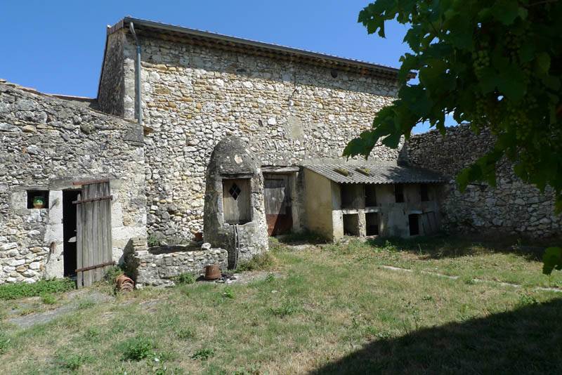 p>Dans un cadre bucolique, vigne, pin et cigales, tout en étant à 5 mn de Montélimar, cette splendide ferme du 18eme siècle s'articule autour d'une grande cour (200m²) ou se trouve encore un vieux puits " borie "en eau. L'ensemble des murs extérieurs forme un tènement entièrement clos. Au sud un porche donne accès sur l'ensemble. A gauche une petite maison en partie restaurée (mais à rénover tout de même) vous permettra d'envisager les travaux tout en vivant sur place. Ensuite vous trouverez dans les bâtiments et les dépendances à restaurer un ensemble de pièces dans leur jus avec un très grand nombre d'éléments anciens. (Mangeoires, cheminée, patouille, escalier, sol, etc.). la surface habitable totale est d'env.320 m² + 200m² de dépendances. terrain piscinable de 3 000 m².