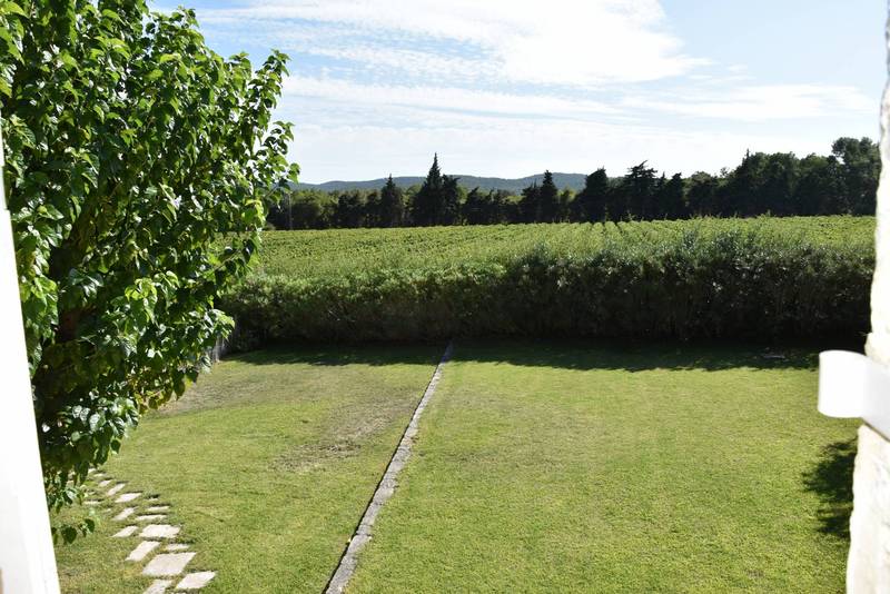 Elle profite d'un terrain clos et paysagé d'essences méditerranéennes de 2200m² et, de toute la campagne environnante, bois et vignes !