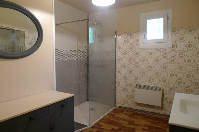 La maison s’élève sur deux niveaux. Au RDC, le hall d’entrée dessert une cuisine indépendante entièrement équipée et un salon /séjour lumineux habillé d’une grande cheminée à foyer ouvert. A l’arrière, une chambre/ bureau. Le couloir dessert 3 chambres, 1 salle d’eau avec douche à l’italienne et wc indépendant.