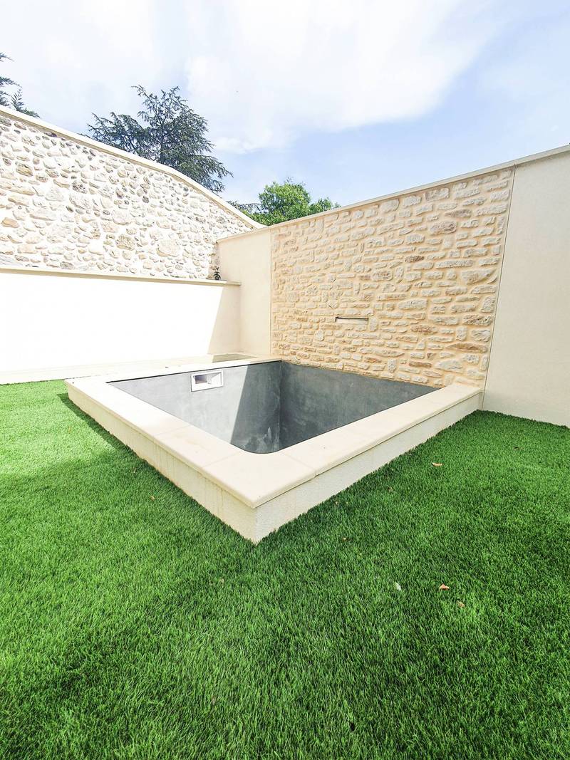 En rez-de-chaussée, vous trouverez une belle pièce de vie avec cuisine américaine équipée et aménagée, 1 toilette et une buanderie. Un accès direct à une terrasse carrelée et un bel espace clos agrémenté d'un bassin.