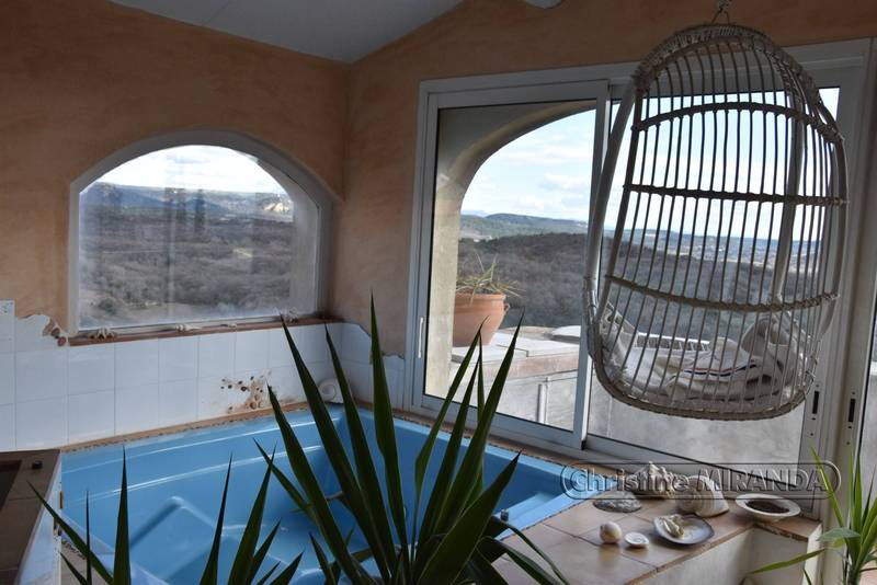 En situation dominante, cette maison profite d’une superbe vue dégagée sur les collines environnantes et le Mont Ventoux. Vous pourrez garer 4 voitures au niveau du rez-de-chaussée, dont 2 dans un garage. A ce niveau, 3 caves dont une à vin. Un atelier, ici exploité avec un four céramique. Un espace avec le local technique de la piscine à traitement au sel.