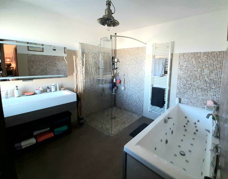 'agence Christine MIRANDA vous propose une maison de village en pierre entièrement rénovée, très bien agencée, avec une vue panoramique et un jardin avec piscine. Le hall d'entrée désert à droite une pièce de vie spacieuse et lumineuse, à gauche le coin nuit avec une chambre parentale, son dressing et sa SDB avec douche italienne, double vasque, baignoire balnéothérapie. Une deuxième chambre avec sa SDE, un grand bureau et un WC indépendant complètent ce niveau. Au niveau inférieur, vous pourrez accueillir famille ou amis grâce aux deux grandes chambres, SDE, WC, et également cellier, garage. Extérieurement, vous profiterez d'une belle terrasse à l'abri du vent avec sa pergola, une piscine chauffée et sécurisée , un espace gazonné à l'ombre d'un platane. Les murs en pierre donnent beaucoup de cachet à ce jardin et vous bénéficiez d'une superbe vue. Cette maison offre des prestations de qualité : chauffage au sol, baies vitrées, volets roulants solaires, eau chaude obtenue grâce aux panneaux solaires et plus encore. Vous cherchez l'espace, la lumière, un minimum d'entretien des extérieurs, cette maison n'attend plus que vous.Proche de toutes commodités. A 3 minutes de l'A7, à 39 minutes d'Avignon, à 1 h 15 de l'aéroport Marignane.