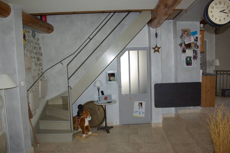 Au rez de chaussée le hall d'entrée, un escalier desservant au 1er niveau les pièces à vivre, la cuisine en partie équipée avec portes fenêtres sur petit balcon, salon avec cheminée, cellier.