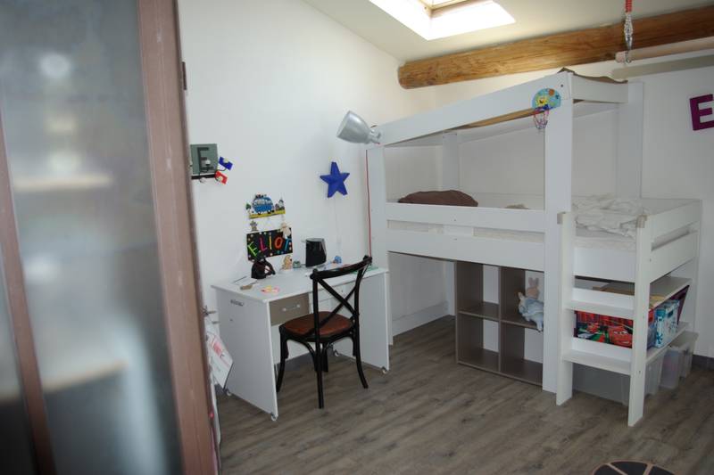 Au dernier étage, mansardées, 3 chambres dont la chambre principale avec baie ouvrant sur une terrasse/solarium. Jolie vue sur les toits du village. Salle de bains + douche, WC.