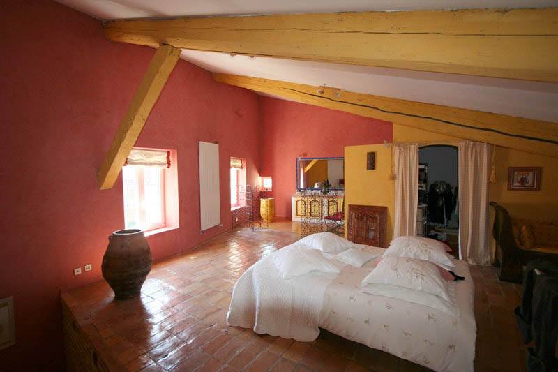 Une porte en feronnerie d'art nous laisse découvrir le rez-de-jardin où se trouve: la cuisine équipée, la salle à manger et, le très beau salon avec cheminée en pierre de 35m², terres cuites récentes au sol. A l'arrière: buanderie, toilettes, cave semi-enterrée. Un escalier en pierre dessert le 1er étage: 2 chambres, sdb avec toilettes et placard.Enfin, au dernier, mansardée, une spacieuse chambre de 60m² avec dressing et salle d'eau,toilettes. Parefeuilles anciens au sol.