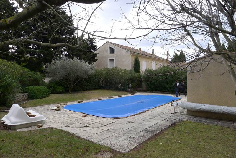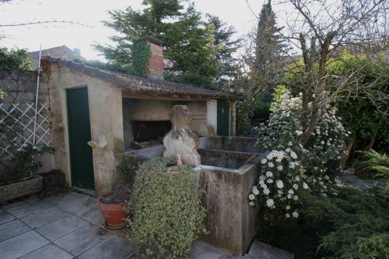 Le jardin au Sud donne côté rue, terrasse dallée. Il communique bien sûr avec le jardin ou se trouve la piscine, la terrasse d'été couverte, douche d'été, bassin d'agréement. Garage, espace parking. DPE = D