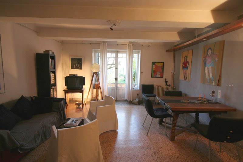 On trouve actuellement: cuisine semi-équipée ouverte sur salon/salle à manger avec terrasse suspendu. spacieux atelier d'artiste d'env. 100m². A l'étage: 5 grandes chambres, SDB. Beaux éléments, notamment les sols. Greniers aménageables.