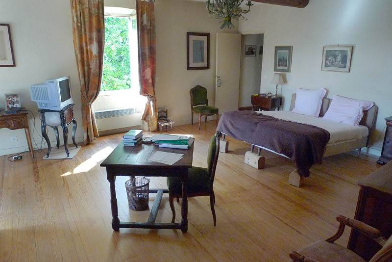 Un Bel escalier en pierre distribue au 1er à gauche, 1 chambre avec terrasse à l'ouest. Autour d'une terrasse commune qui offre au sud 1 vue splendide sur le village et la vallée, s'enroulent 2 suites ouvertes sur la terrasse. La 1ere comporte 1 chambre, 1 bureau (parefeuilles au sol), 1 SDB et 1 WC et le 2 eme, bureau et chambre(ou 2 chambres) car 1 couloir arrière longe les pièces et permet 1 distribution indépendante.