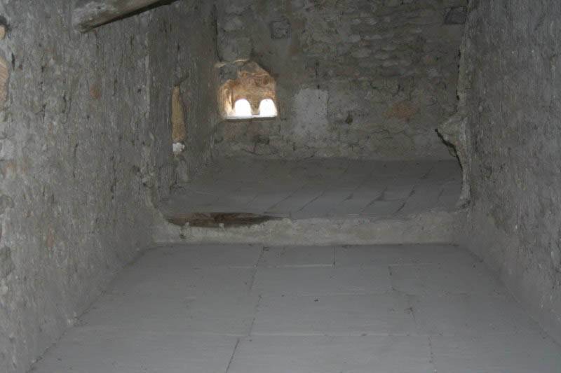 Un escalier couvert, en pierre (recouvert de ciment) nous méne à l'étage: Entrée directe sur: le séjour , tomettes au sol, une bugadière (ancienne machine à laver), cheminée et vieux placard mural. Une patouille et, dans son prolongement un cabinet de toilette et, 2 pièces en enfilade avec dalles de pierre au sol.