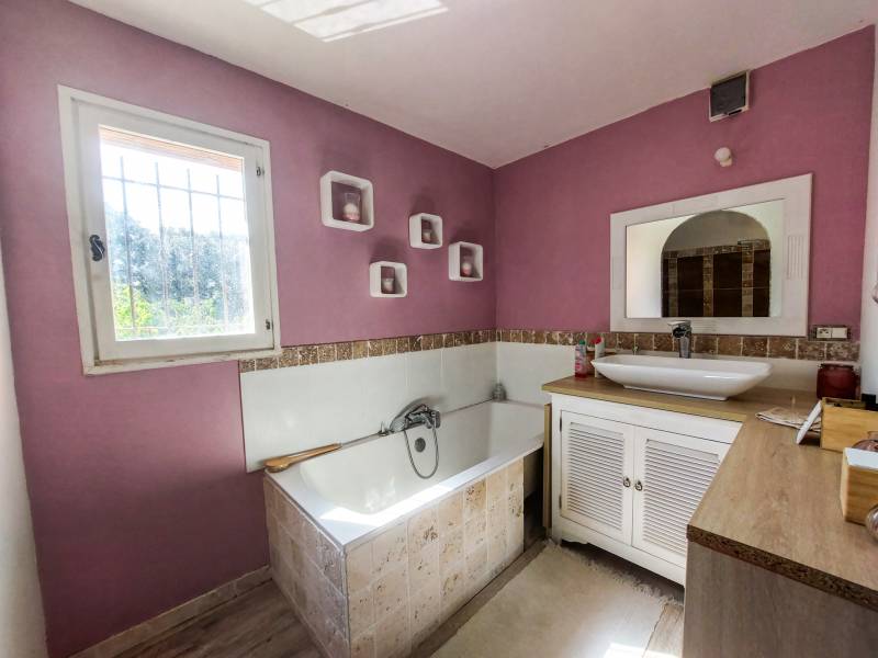 l'étage 4 chambres et une salle d'eau. Jolie terrasse et espace piscine. Travaux à prévoir.
