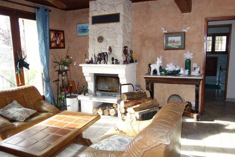 L'habitation principale s’organise sur 2 niveaux. On peut entrer par le coté nord en passant par une terrasse couverte de 10m² ou le coté sud en empruntant l’escalier extérieur en pierre donnant sur une belle terrasse couverte de 12 m².