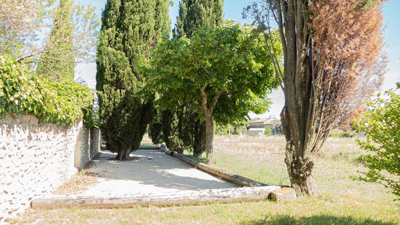 Elle s'ouvre sur une très agréable cour avec préau (parfait pour abriter repas et fêtes à l'abri) et jardin arboré d'essences méditerranéennes. Le terrain d1,1ha :un champ de lavande, une jeune truffière