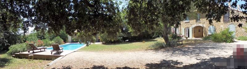 Derrières de hauts murs en pierres et végétation se dévoile un très beau mas restauré d'environ 190m² habitables sur 2 niveaux le tout sur un terrain clos de 1243m² avec piscine 10m*4m. Orientée plein sud, on trouve en rez de jardin des pièces particulièrement agréables en été grâce à la fraîcheur apportée par la pierre. Une cuisine équipée ouverte sur salle à manger de 40m², un vaste et lumineux salon. Toujours au même niveau deux chambres dont une suite parentals avec salle d'eau, wc, dressing. A l'étage: 3 grandes chambres avec toutes une salle de bains et wc. Une terrasse orientée sud/ouest. Elle offre un mélange de vieilles pierres et d'éléments plus contemporains. Bel ensemble. Un petit havre de paix desservi par une petite route peu fréquentée.