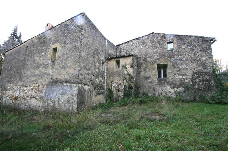 p>Une belle route que termine un chemin mène à cette ancienne ferme dont subsistent quelques éléments de sa vie passée (ancienne pièce de vie intouchée en rez de jardin). La cour intérieure distribue en RDJ un salon, cuisine (à aménager entièrement) et caves voutées. Un escalier extérieur sous appentis mène directement à l'étage qui comporte lui, 4 chambres, 1 salon, SDB et toilettes (distribué aussi de l'intérieur). Il faut prévoir un budget pour réaménager cuisine et salle de bain ainsi que pour rafraichir les murs. Les 16 ha de terres sont constitués de bois (chênes, cèdres) et de landes. Une source vive coule à l'Est du bâti. Au Nord un promontoire qui conserve les traces d'un ancien guet domine la vallée.