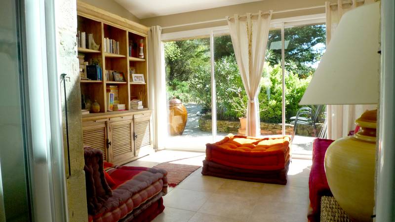 Terrain paysagé de 5000m² avec piscine de 11 mètres x 5 mètres. De plain-pied, ouvrant sur la terrasse dallée à l'ombre de son mûrier, une cuisine équipée, une arrière cuisine, un WC invités avec lave-mains, une salle à manger, un salon avec cheminée, un petit salon/bibliothèque, 2 chambres climatisées avec salle d'eau, un WC, un petit salon privé/bureau avec un coin cuisine. Tous les sols de la maison sont carrelés.