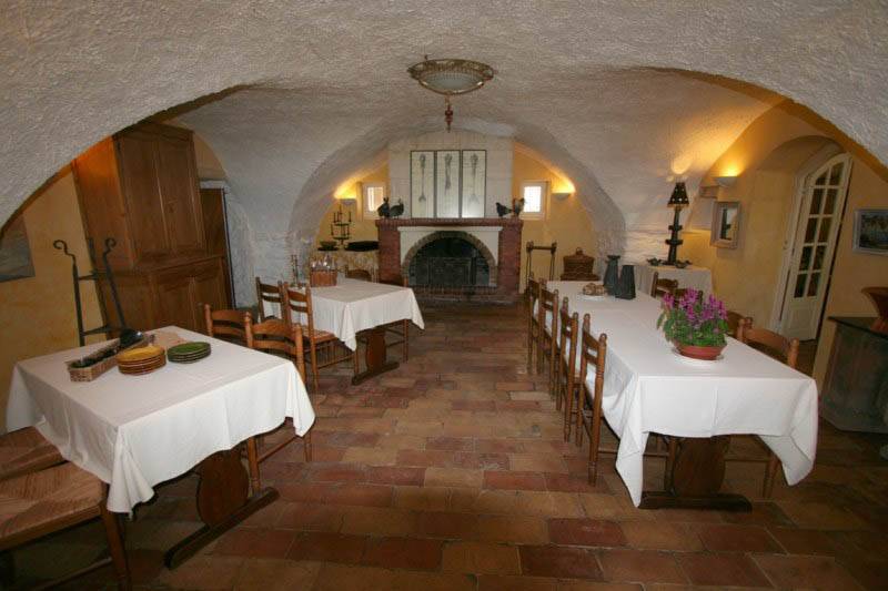 La cuisine est installée dans une salle voutée équipement professionnel , chambre froide,une vraie cave voutée. Elle communique avec une dépendance à aménager.