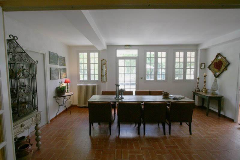 Le salon principale s'ouvre sur une veranda/salle à manger , salon vouté avec une grande cheminée , au sol des mallons de terre cuite. En enfilade un deuxième salon avec coin bar , cheminée provencale en pierre et au plafond des dalles de pierre.