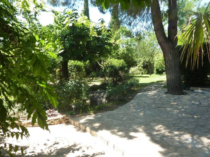 Le premier corps de bâtiment de 270 m² jouissant d'une exposition sud-ouest est composé d'une grande cuisine contemporaine avec îlot central, un salon avec cheminée et plafond provençal, une suite parentale ; les deux autres chambres sont spacieuses et lumineuses, l'une est mansardée, l'autre possède une paroi vitrée style atelier. Deux duplex et une chambre supplémentaire complètent ce logement principal. Ces espaces sont modulables et peuvent être rassemblés en fonction des besoins. Les pièces de vie s'ouvrent sur une terrasse au sud et profitent de l'ombre d'un platane centenaire. Le deuxième corps de bâtiment de 350 m² est répartis sur 2 niveaux. Au rez-de-chaussée, des caves voûtées, une cuisine d'été, une galerie et une grande pièce de réception. Un escalier en pierre donne accès à une coursive exposée au sud avec ses arches et ses six chambres dotées de leur salle d'eau. Le terrain de 2 437 m² est clos de murs en pierres. Le jardin méditerranéen est arboré de platanes, de pins maritimes ; des murets en pierres sèches dessinent ses contours ; une belle piscine 14 x 6 avec plages en bois et un espace jeux pour les enfants complètent le tout.