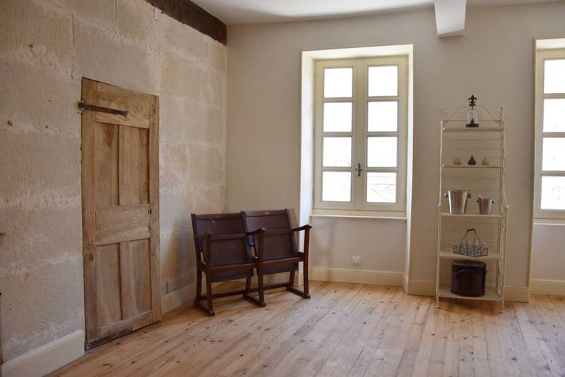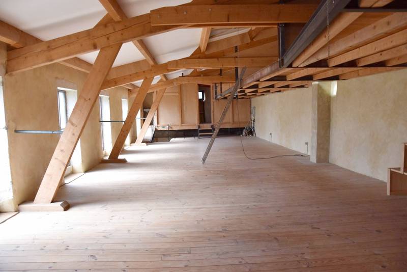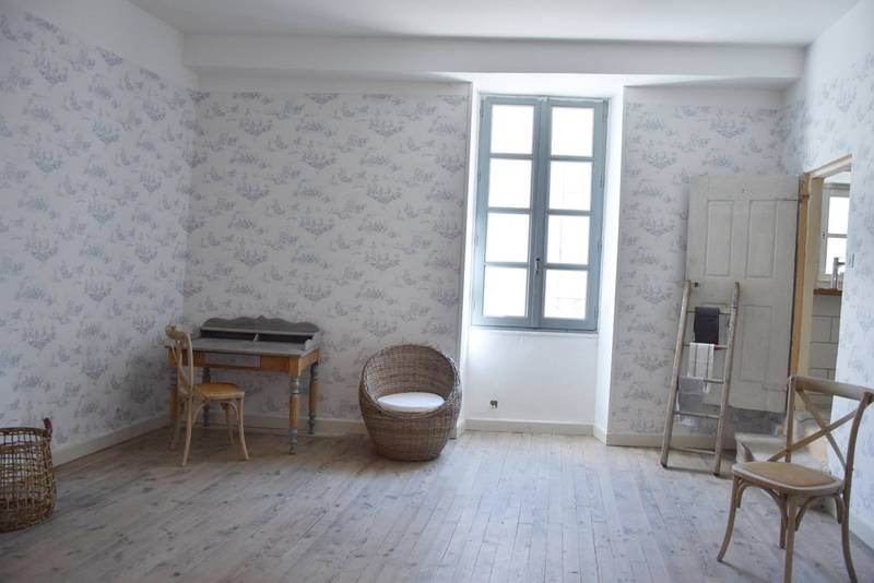 Sur rue, une grande porte en bois est la seule entrée pour le premier bâtiment. De style imposant, son agencement intérieur étonne par un style choisi genre “loft urbain” avec grand open-space sur 2 niveaux. Une très belle hauteur sous plafond au rez-de-chaussée composé de deux spacieuses pièces. Au premier, l'agencement de l'appartement tout en bois, se fond dans la charpente. Des jeux de poulies, d'échelle coulissante et de panneaux de bois glissant délimitent les espaces en les rendant ludiques, atypiques et contemporains. Le coin salle de bain et toilette sont volontairement réduit afin de privilégier un large espace ouvert pour le coin vie et nuit. Le bâtiment dispose d'élégantes et grandes ouvertures avec vitres opacifiées sur le jardin de la propriété. Possédant une double destination, on peut opter pour créer un commerce ou en faire une habitation en part entière. On peut également laisser à ce bâti, son entière dépendance ou choisir de lui créer une belle ouverture sur jardin.