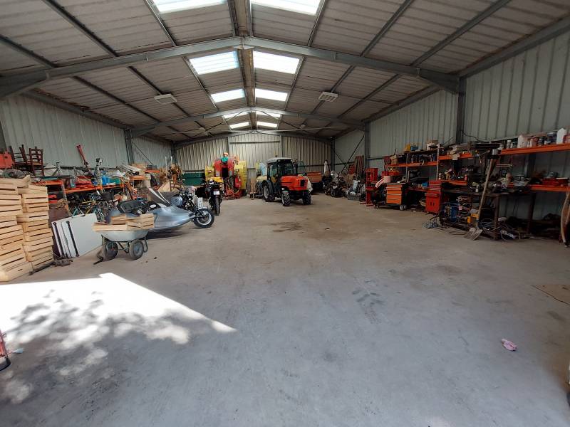 Elle bénéficie au rdc, d'une agréable et lumineuse pièce de vie donnant sur terrasse. Une cuisine équipée. Bureau et 2 chambres. salle d'eau et wc. A l'étage, 2 chambres, une salle d'eau, wc. Cellier/buanderie. Terrain entièrement clôturé d'env.5000m² avec 2 hangars dont un en métal, récent d'env.200m² et un autre avec bâche.
