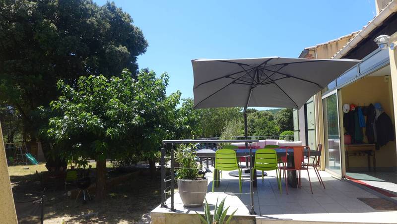 deux pas d’un très beau village perché de la Drôme provençale . A 5 mn de Saint Paul trois chateaux. Au milieu des chênes. Jolie villa des années 80 entièrement rénovée en 2013 avec de beaux matériaux. Le tout sur un terrain clôturé et arboré de 2500m². D’une surface habitable de 145m² environ, elle s’élève sur 2 niveaux.Composée, au RDC d’une cuisine équipée ouverte sur une belle pièce de vie séjour/salon, très lumineuse et confortable. Une baie vitrée donnant directement sur la terrasse. Au sol un plancher massif sur la partie séjour et carreaux de ciment pour le coin cuisine. Au centre, un beau poêle en fonte vient agrémenter ce bel espace convivial. Toujours au même niveau, une belle chambre parentale (plancher au sol), équipée d’une grande salle d’eau avec douche à l’italienne, double vasque et grand miroir. Attenant, un grand dressing aménagé. Cellier avec accès au garage et wc indépendant. L’étage est accessible par un bel escalier avec rambarde acier de style contemporain. En haut 3 chambres (plancher au sol) se partagent une salle de bains, wc. Sous pente avec vélux, une grande salle de jeux pouvant servir de chambre supplémentaire. La maison est chauffée par une pompe à chaleur avec clim réversible. Le terrain de 2500m² clôturé et arboré , comprend l’espace piscine (5x10m) avec de grandes plages en bois et coin repos à l’ombre des chênes. La piscine à électrolyse est chauffée, sécurisée par une bâche à barres. Terrain de boules, potager, chênes truffiers.