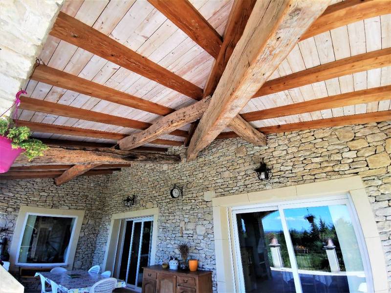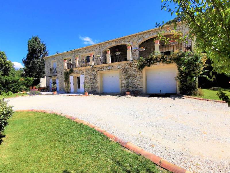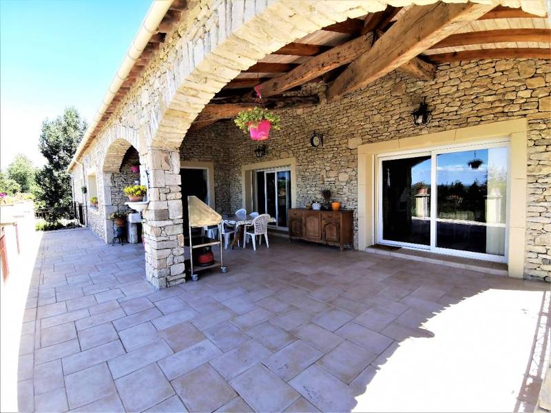 10 km de Grignan, 15km de Nyons. A7 Montélimar Sud 30mn. Sur le flan sud d'un ancien village médiéval, avec vue sur la campagne environnante, belle construction en pierres de 2010. Implantée sur un terrain de 3000m², cette imposante bâtisse de 258m² posséde 2 entrées. Une entrée sud sur le jardin et une au Nord avec entrée direct à la maison principale et garage. Elle offre des intérieurs soignés, de beaux espaces. Un mélange de vieilles pierres, de poutres, et des plafonds en voûtain.
