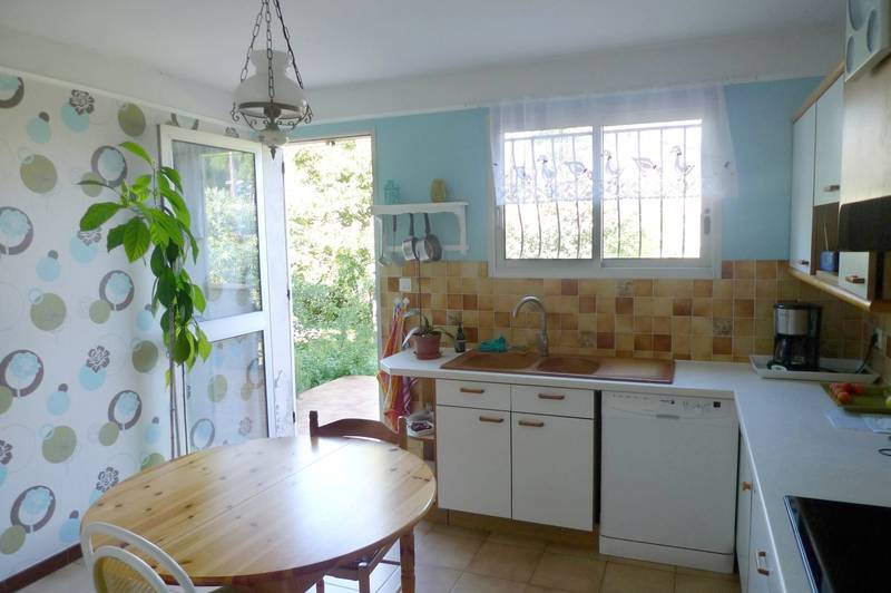 Habitable et bien entretenue, vous disposerez de plain pied, d'un salon avec cheminée à insert, salle à manger, cuisine ouvrant sur une terrasse à l'Ouest, arrière cuisine avec buanderie et cellier .toujours en rez de jardin, 2 chambres, salle de bains avec douche, WC. Au Sud, une terrasse couverte ombragée de verdure.L'étage est desservi par un escalier bois. Là: 2 chambres mansardées, une pièce de jeux, une pièce pouvant devenir une salle de bains.