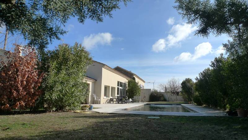 Pas de nuisance, grande pièce de vie ouvrant sur le jardin clos et son bassin de nage.