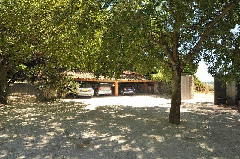 Auvent pour quatre voitures, séparé de la maison, permet de ne pas voir les voitures , cela crée ainsi un espace privatif autour de la
