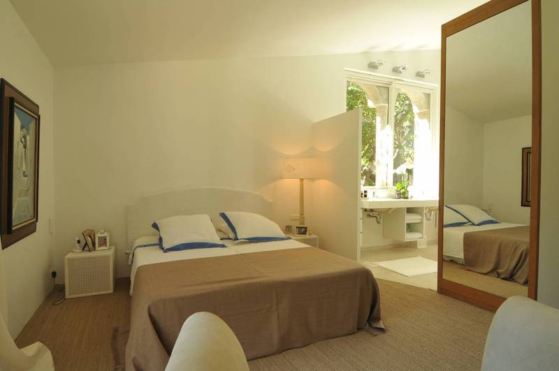 Une grande chambre avec salle de bain donnant sur le patio plein sud au rez de chaussé.