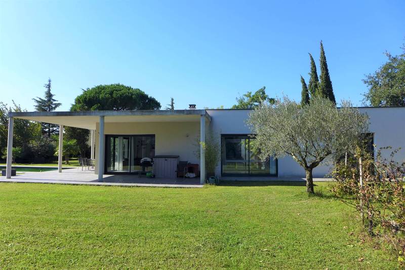 Sh 220m²: entrée, cuisine équipée ouverte, salon, salle à manger, chambre parentale avec salle d'eau, WC et dressing, 1 chambre avec sa salle d'eau. Toutes sont articulées autour d'un très agréable patio. Belle terrasse carrelée en partie couverte.