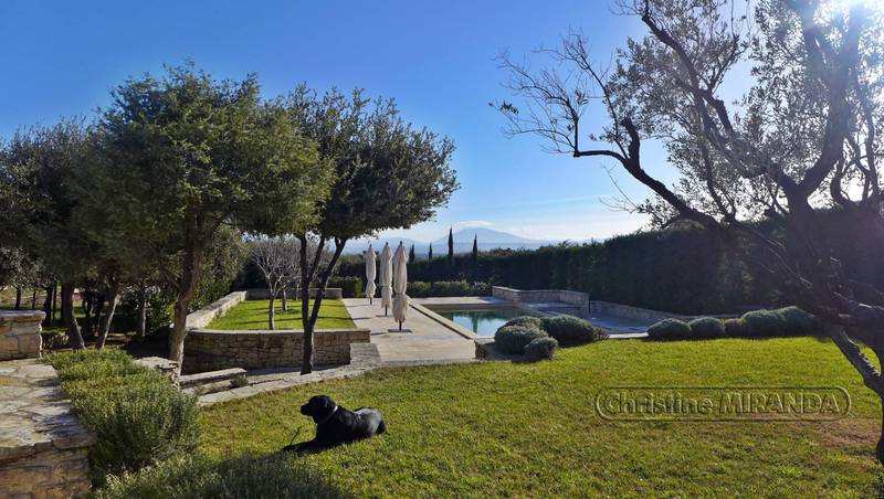 Derrière un haut portail, au calme dans quartier résidentiel et prisé, très belle propriété bénéficiant d'une vue dégagée sur le Mont Ventoux. Dans quartier résidentiel, au calme, Très belle maison en pierre sur un terrain de 2154m² parfaitement paysagé, planté et clos en grande partie de murets en pierres sèches.