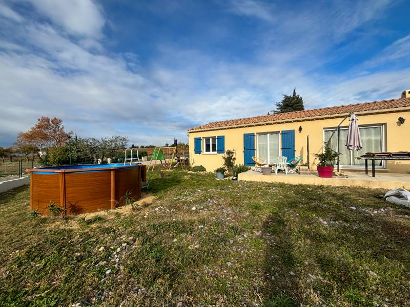 e tout sur une très jolie parcelle planté d'oliviers d'environ 712m² avec piscine hors sol, et balançoire.